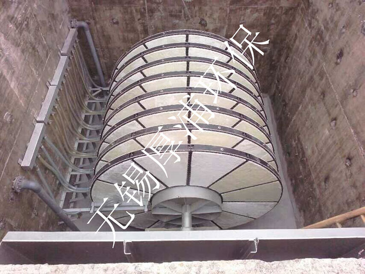 纖維轉(zhuǎn)盤過濾器是使液體通過一層濾料的機(jī)械篩濾作用取出懸浮于液體中的微小顆粒物質(zhì)。過濾器所使用的濾料由金屬、化纖等多種合成材料以不同方式編織而成,過濾孔徑一般為10~1000um。主要應(yīng)用于市政污水處理廠深度處理,工業(yè)工藝用水的過濾,以及中水的回用??商娲盀V池,設(shè)置于常規(guī)活性污泥法、SBR系統(tǒng)、CASS系統(tǒng)、延時曝氣法、氧化溝系統(tǒng)、滴濾池系統(tǒng)、氧化塘系統(tǒng)之后,主要用于去除總懸浮物,結(jié)合投加藥劑可去除部分總磷、濁度、COD等。